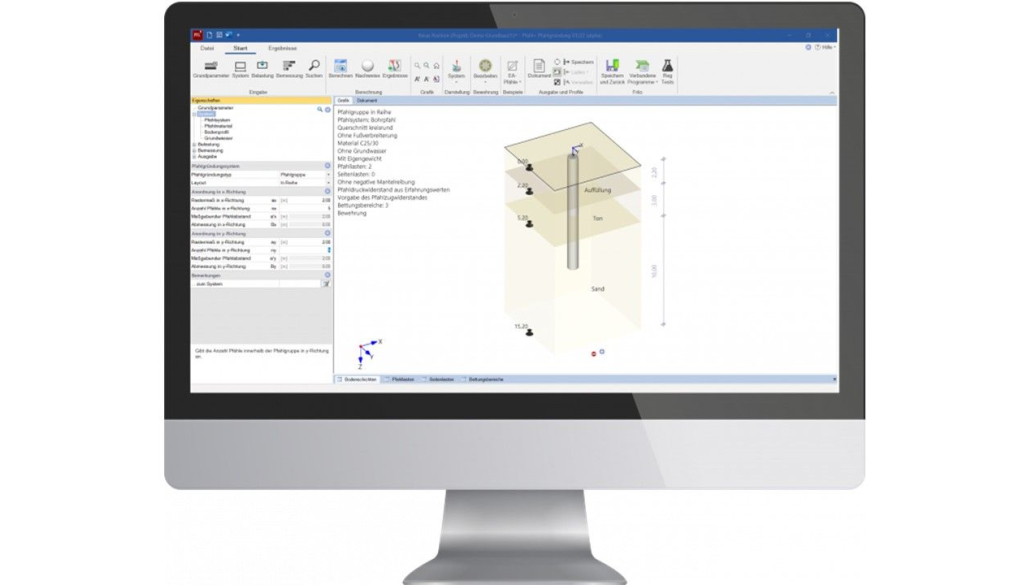 Stuttgart, 26. Januar 2022 - Wenn in der Bauausführung schlecht oder nicht tragfähige Boden- oder Gesteinsschichten im Baugrund zu überbrücken sind, kommt die Pfahlgründung zum Einsatz. Um Tragwerke sicher mit Hilfe von Pfählen zu gründen, müssen allerdings komplexe Anforderungen wie die nicht lineare Widerstandssetzungslinie und besondere grundbauspezifische Einwirkungen berücksichtigt werden. Diesen Anforderungen an die Pfahlgründung trägt das FRILO-Programm Pfahl+ Rechnung.