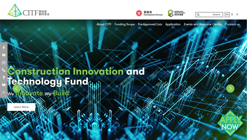 Im Mittelpunkt dieser laufenden BIM-bezogenen Aktivitäten steht der Construction Innovation and Technology Fund (CITF). Dieser wurde eigens eingerichtet, um die breitere Einführung innovativer Konstruktionsmethoden und neuer Technologien in der Bauindustrie hinsichtlich Produktivitätssteigerung, Erhöhung der Bauqualität, Verbesserung der Baustellensicherheit und Optimierung der Umweltverträglichkeit zu fördern.