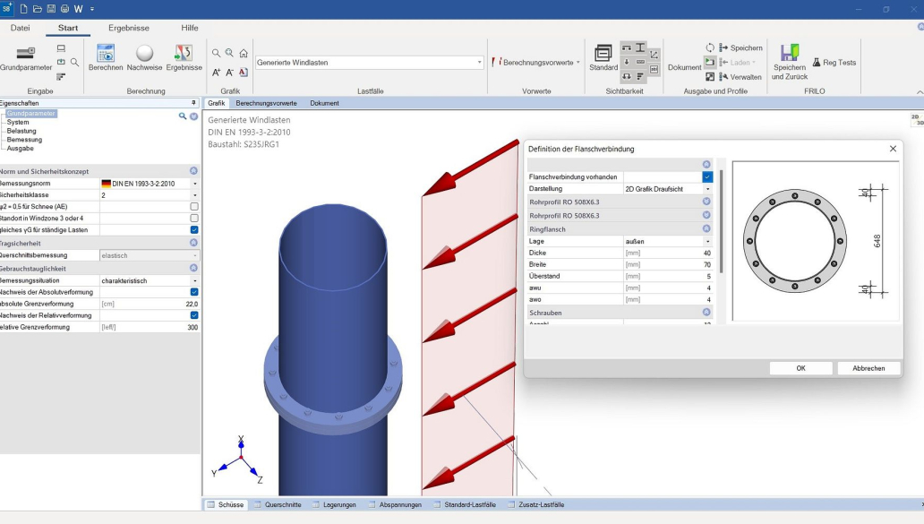 Mit den Programmen Schornstein Stahl S8+ und Antennenbemessung ATB+ wurden zwei smarte Speziallösungen für den Stahlbau entwickelt. Die beiden neuen FRILO-Programme versetzen Tragwerksplaner nun in die Lage, Stahlschornsteine nach DIN EN 1993-3-2 und Antennenmaste nach DIN EN 1993-3-1 zuverlässig und unkompliziert zu berechnen. Die Lösungen sind auf die speziellen Anforderungen bei der Bemessung der entsprechenden Konstruktionen zugeschnitten und mit der modernen, benutzerfreundlichen PLUS-Oberfläche ausgestattet. Insbesondere die automatische Ermittlung der Windlasten sowie die Ermittlung der Ersatzkräfte infolge wirbelerregter Querschwingungen bieten den Anwendern einen großen Mehrwert.