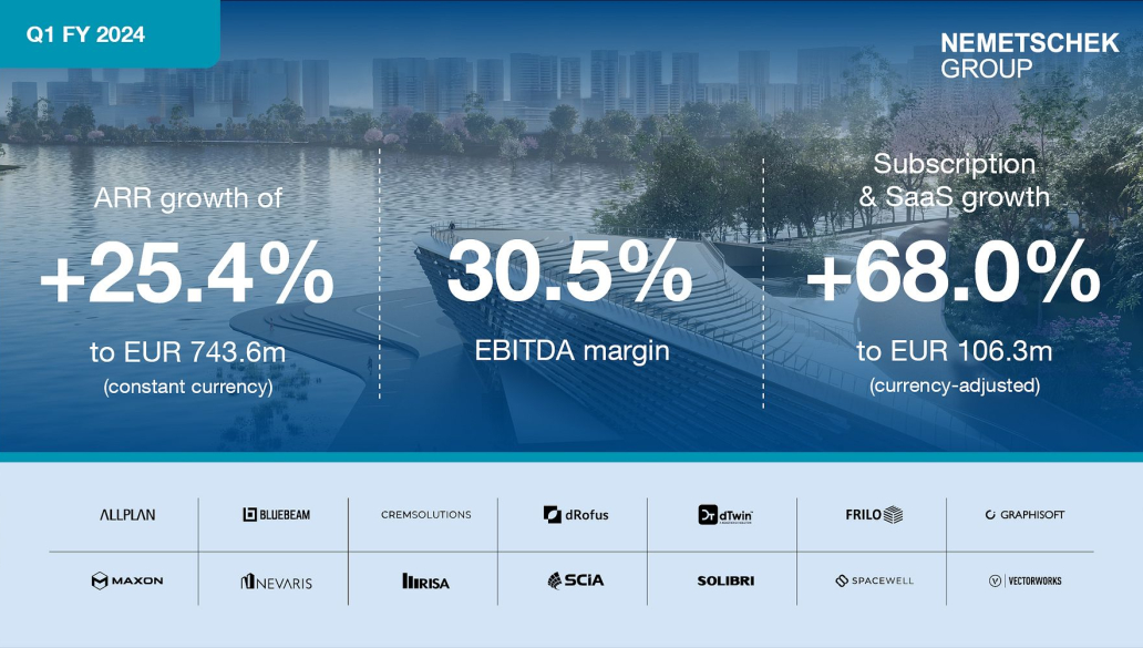 Nemetschek Group: Erfolgreicher Jahresauftakt im Q1 2024 mit operativ zweistelligem Umsatzwachstum und weiterhin hohem Margenniveau