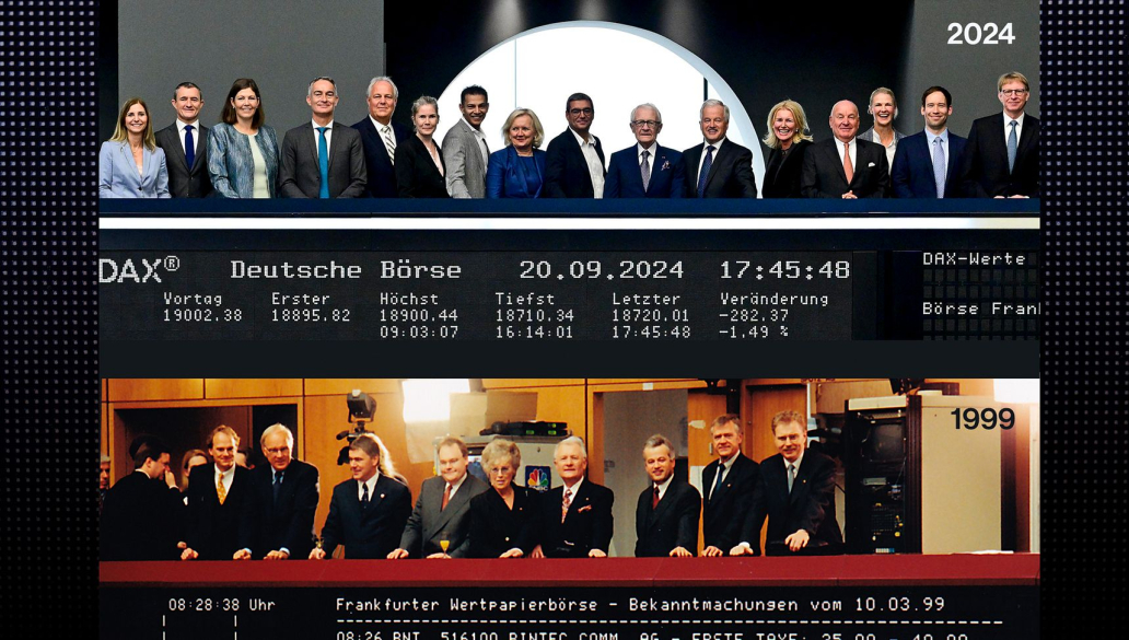 Munich, 23 September 2024 – The Nemetschek Group, a leading global provider of software solutions for the AEC/O and media industry, celebrated its 25th anniversary on the Frankfurt Stock Exchange last Friday with a “Bell Ringing Ceremony”. The so-called “Closing Bell” marked the end of the trading day and a special milestone in the company's history, which has undergone impressive development since its IPO in 1999. At the center of the celebration was the symbolic tolling of the bell, which crowned a successful quarter of a century on the stock exchange.