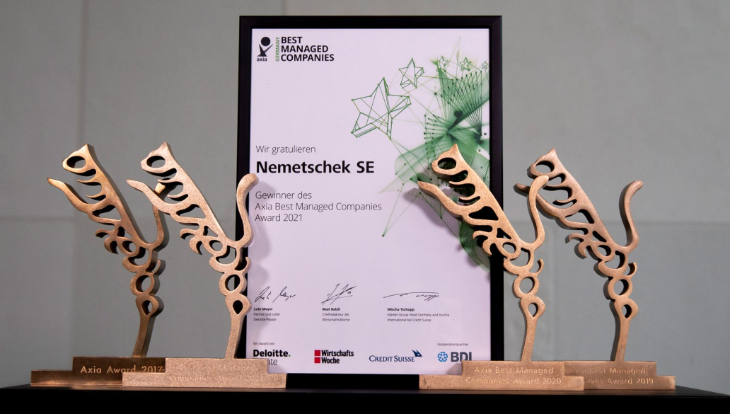 The Nemetschek Group has been awarded with the AxiaBest Managed Companies Award 2021. The prize and quality seal are awarded annually by Deloitte Private, CreditSuisse, WirtschaftsWoche and the Federal Association of German Industry BDI to outstandingly managed companies. Nemetschek received the award for the fourth time this year.